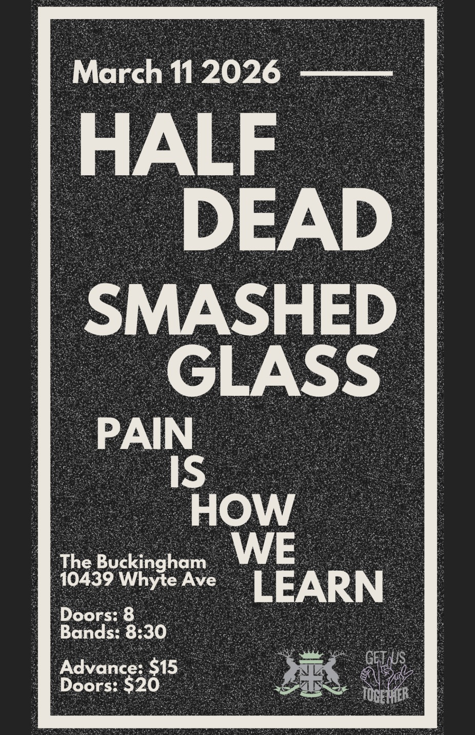 8pm-1amHalf Dead w/Smashed Glass, Pain Is How We LearnWednesday, March 11th, 2026