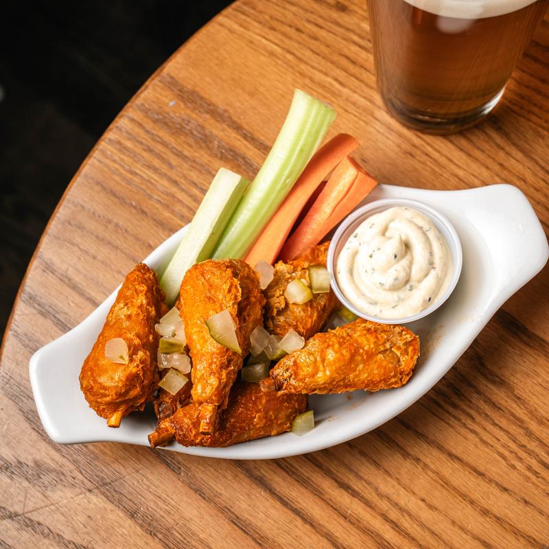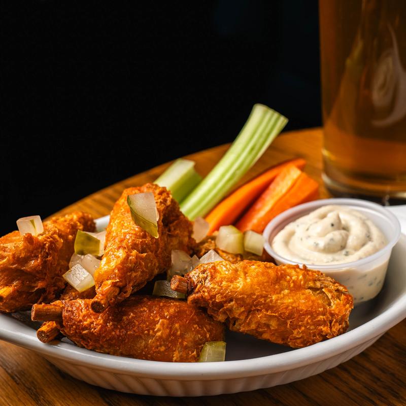 6 of our award winning wings. Tossed in your choice of: Hot, Nashville Hot, BBQ, Teriyaki, Maple Sriracha, Sweet Chili Heat, Cajun, Chilli Mango, Dill Pickle, Lemon 'n' Pepper or Salt 'n' Pepper | *Served with our house-made ranch dip & fresh veggies