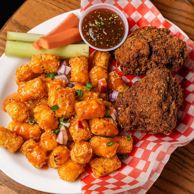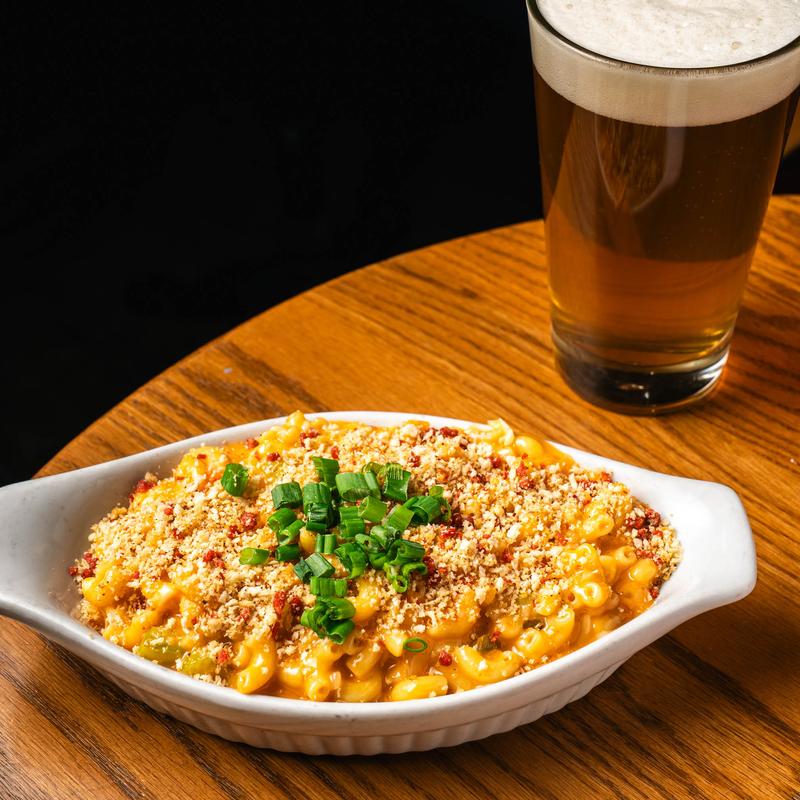 Homemade queso, macaroni, onions, celery & panko topped with our buffalo B.F.C